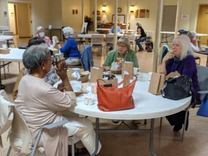 Members enjoy box lunches.